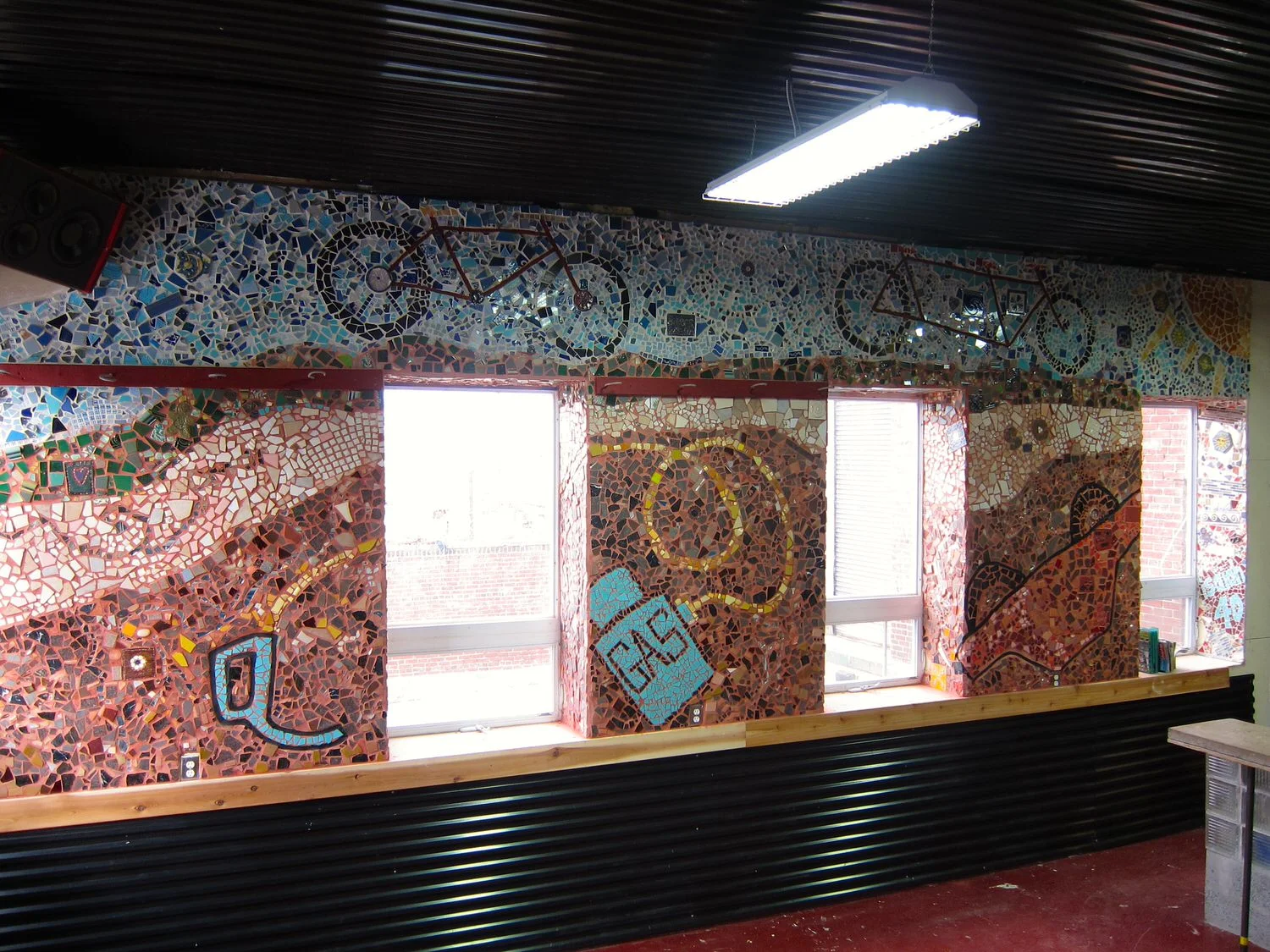 One challenge in relational art making is to define the unique levels of contributions from the artists, the community, and if applicable those who commission the work. Simple Cycle’s owner had a specific design in mind to communicate a message relevant to his non-profit bicycle shop. The contribution of the youth was to facilitate the project by inviting contributions from the greater community to create the mosaic. As the artist, I contributed my knowledge of the medium to create a lasting mosaic mural.